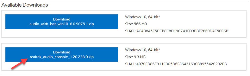 The Realtek Audio Console is not available directly from Realtek. But fortunately, you can download it from Intel’s website.
